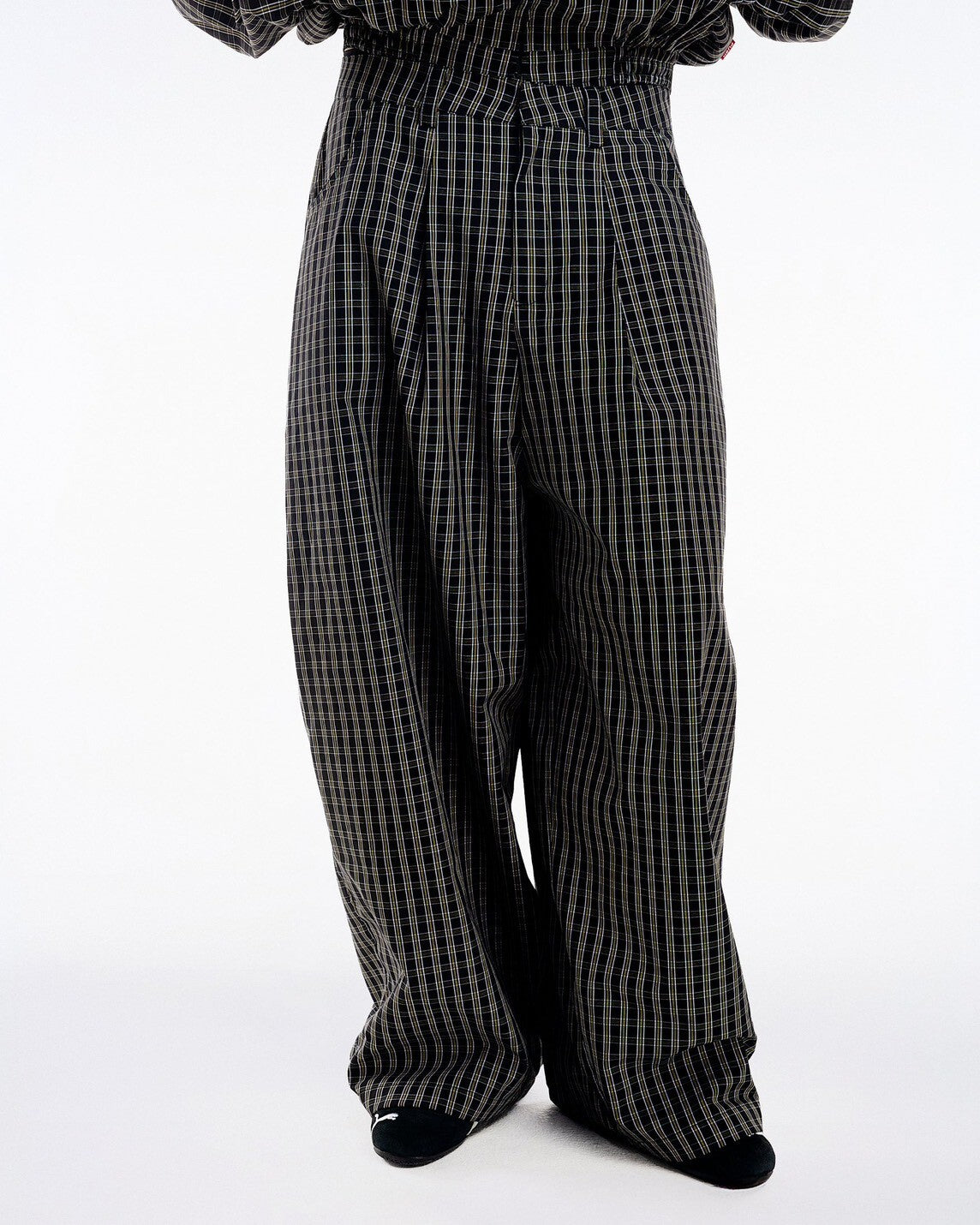 PUSH PUSH - P-P88 Gingham Wide Pants 格紋 寬鬆 舒適 休閒 長褲