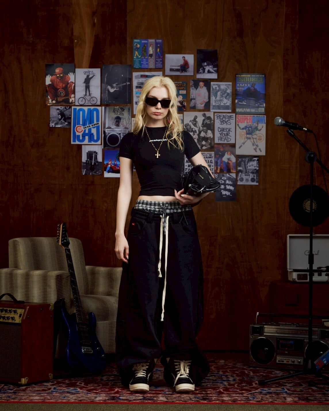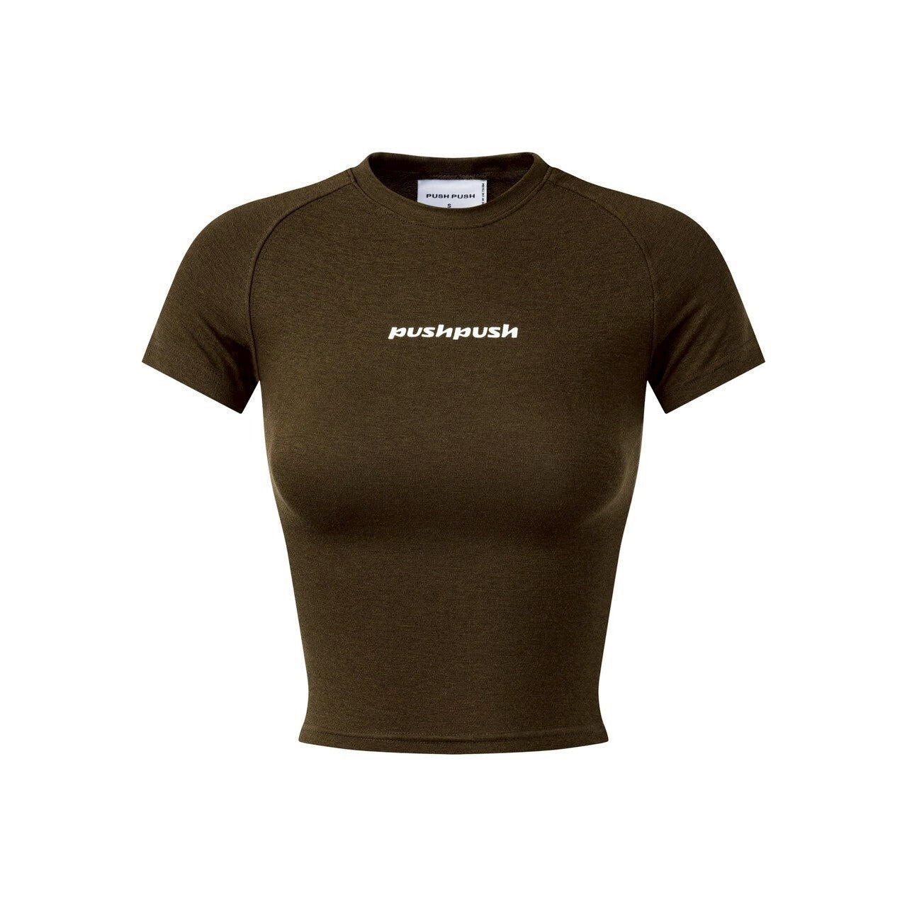 PUSH PUSH - GIGI RAGLAN TEE 文字刺繡收呦緊身短袖
