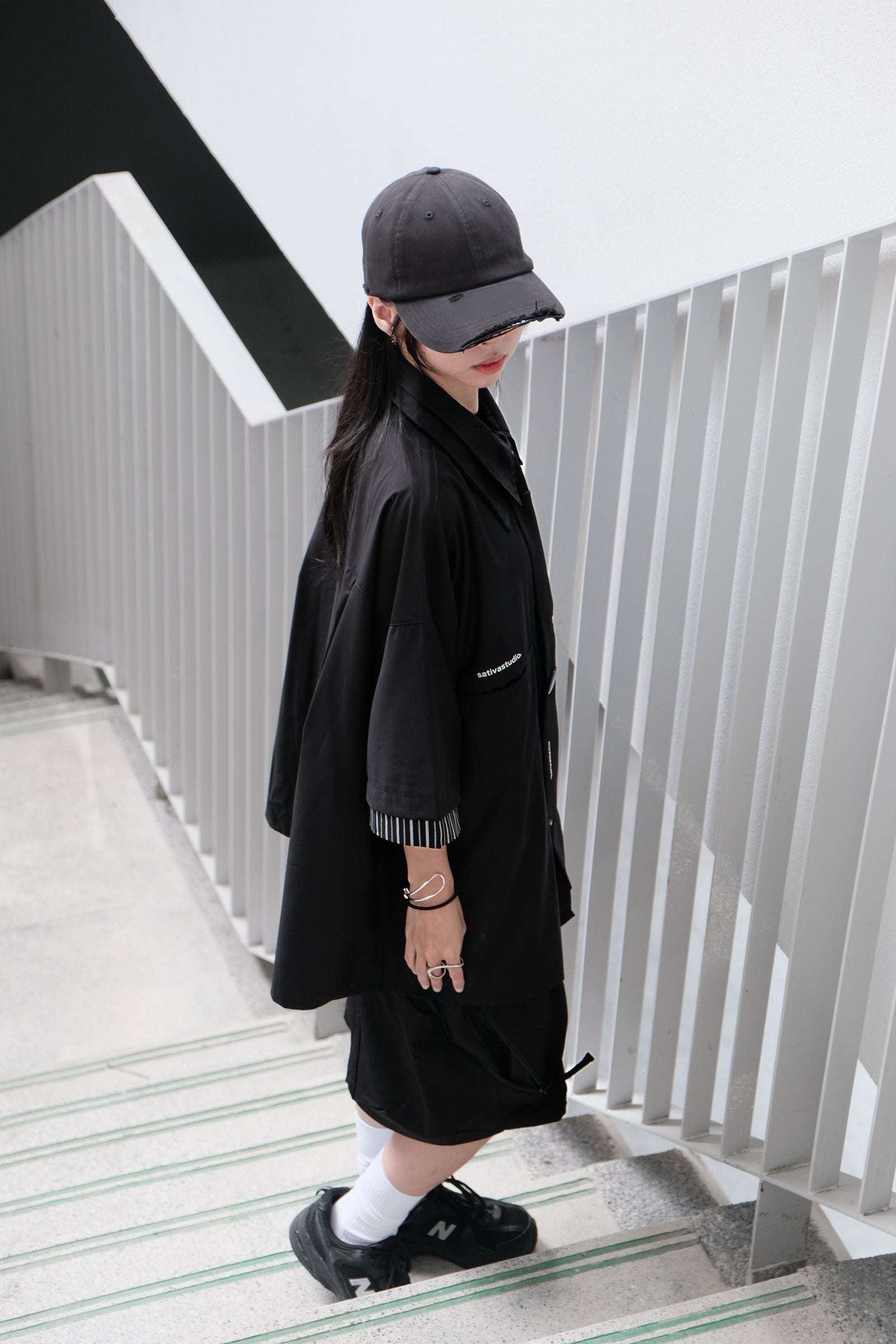 延續 “TS-02”的「向度」設計邏輯與張力,SATIVASTUDIO嘗試將襯衫體制重新解構、重組並再現。我們對於日常的想像在於,將“Urban Outfit”概念融入生活之中,踏入街景廣泛應用於任何場域。”TS-03”重新詮釋襯衫概念,並在實驗階段將「重組」概念視覺化,套用設計邏輯中的疊加效果,讓襯衫穿搭不再僅是簡略單品,而是予以不同的穿著層次,將日常生活的儀式感重新延展,與眾不同。