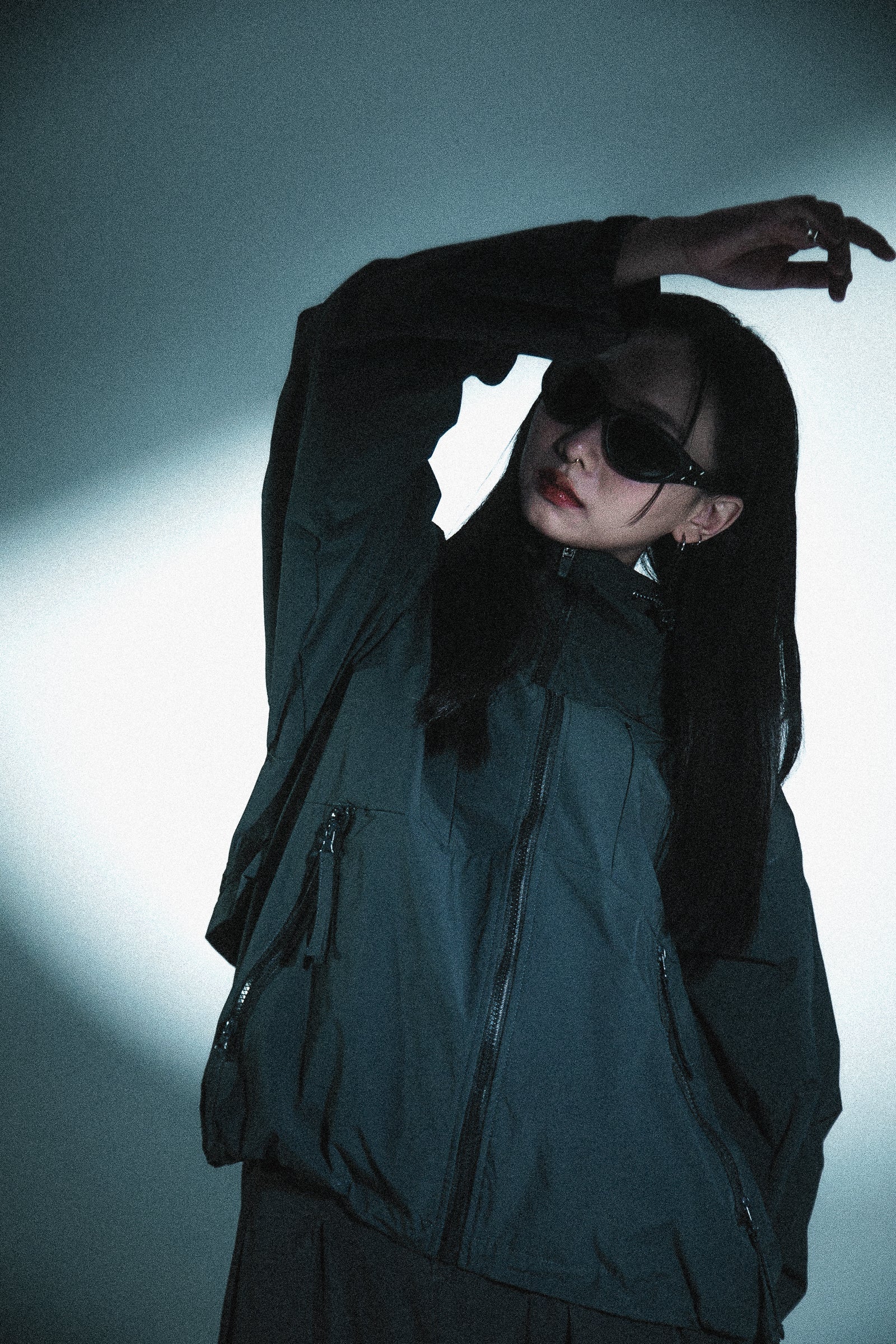 賦予多層次穿搭之上的無限可能;手袖剪裁運用活折設計搭配袖口魔鬼沾調節,