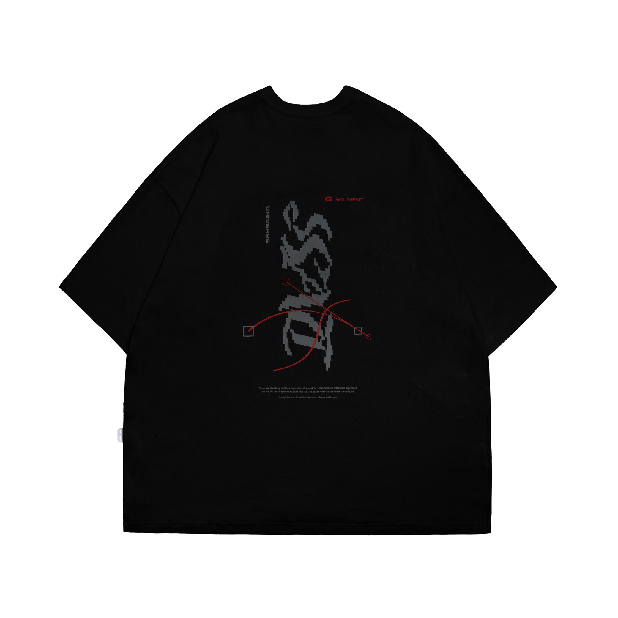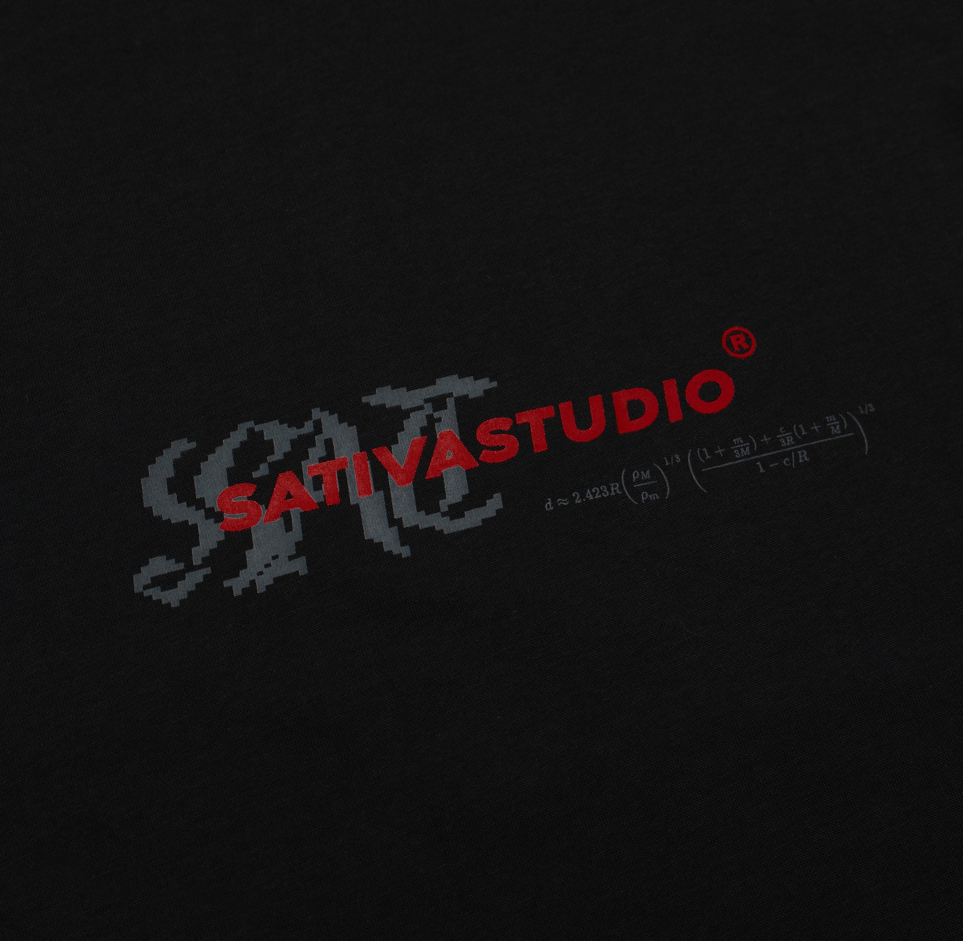 本次作品採用100% Cotton透氣舒適純棉,排版設計延續“UG-02”的邏輯,賦予無機物主視覺更為具象化的視覺張力與能動性,旨在透過線條勾勒出更為直觀且富有層次的結構;正面主視覺將品牌LOGO以「天體」亦向輔以「洛希極限」的精準公式呈現;後背視覺則將天體重力與天體之間的潮汐力以線條方式呈現其樣態,流體從原型逐漸轉化到變形、破碎,最終成為另一個天體的外環,並將其意識幻化為穿著單品,以此彰顯SATIVASTUDIO的製造與穿搭想像。