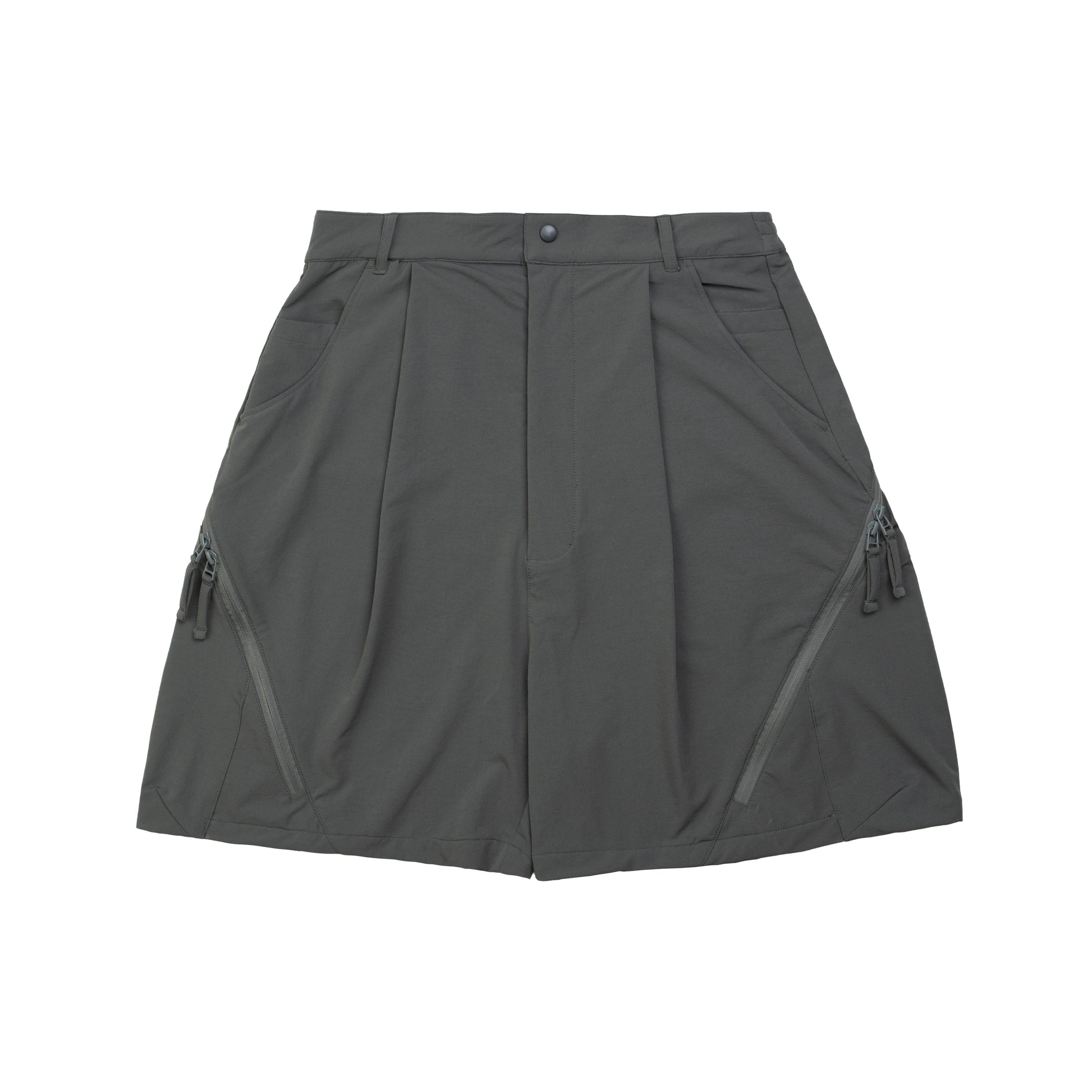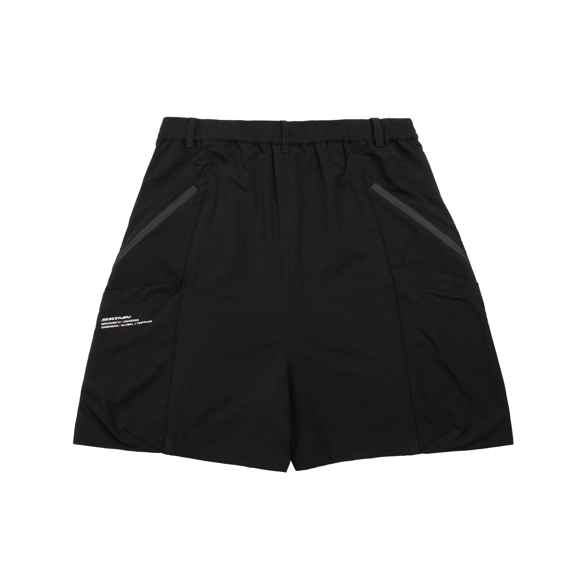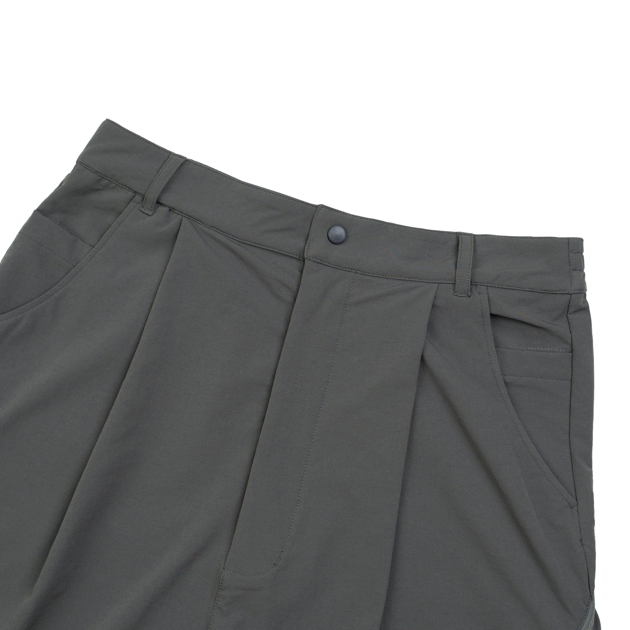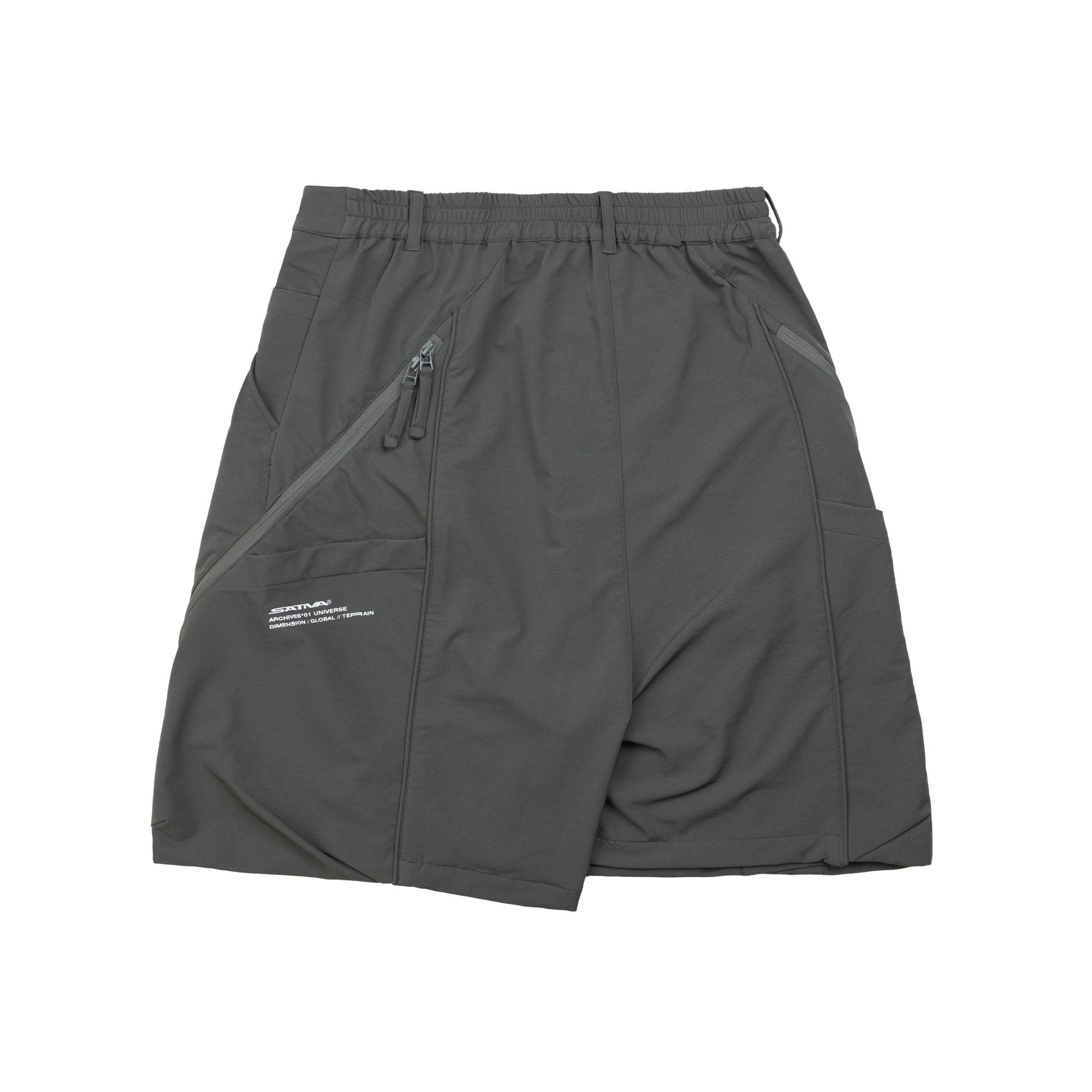 本次作品採用88%Nylon與12%Spandex的本體材質融入92%Polyster與8%Spandex的舒適透氣內裏,兩側口袋在既有的插袋上新增磁吸內袋的設計,給予穿著者更具層次的收納應用;兩側褲體新增拉鍊配置,同時在層次之中納入異材質拼接的效果,將機能風格融入運動材質的製造概念,並在褲體兩側後束額外配置磁吸口袋,給予外觀上不俗的層次張力,更讓穿著者適性收納,在城市街景中增添多種穿著情境以及模擬自身穿搭的形貌。