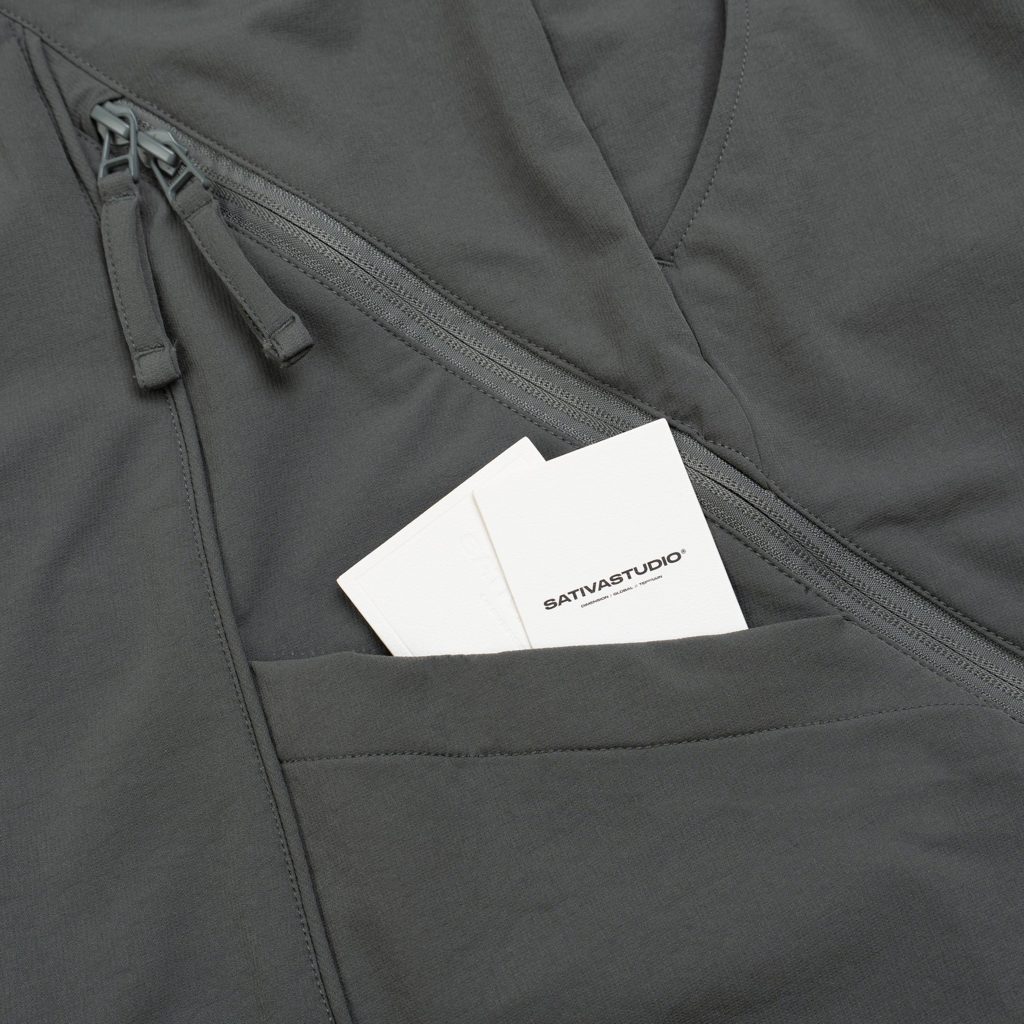 延續SP系列的“Urban Outfit”創造精神,”SP-04”在眾多機能裝束的製造概念上脫穎而出,並以「異材質拼接」作為本次實驗品的操作變數。屏棄過往在外觀上羅列生成的口袋設計,”SP-04”將其內斂並收束,改以在既有收納空間的側袋上進行改造,同時加入舒適透氣的操縱因子,凝聚、精煉、重塑並改編,將機能哲學貫徹生活步驟融入SATIVASTUDIO的實驗精神,將SP系列不斷蛻變後逐步實踐於日常生活。