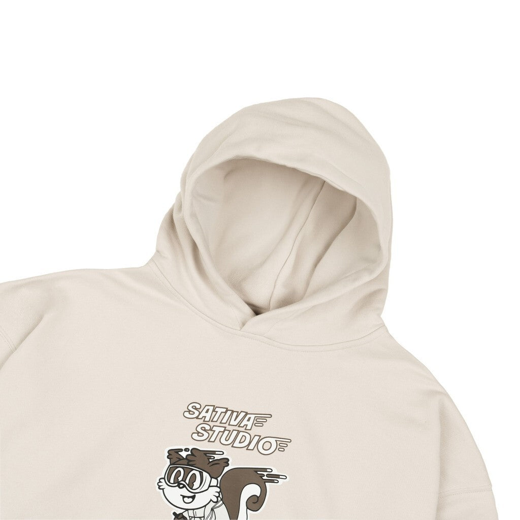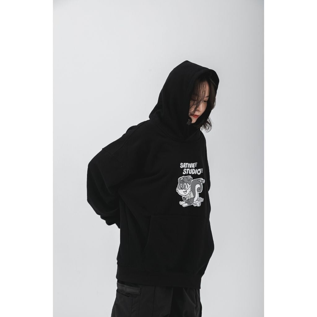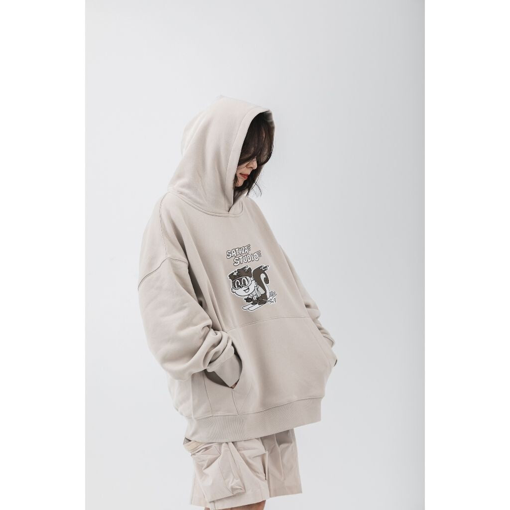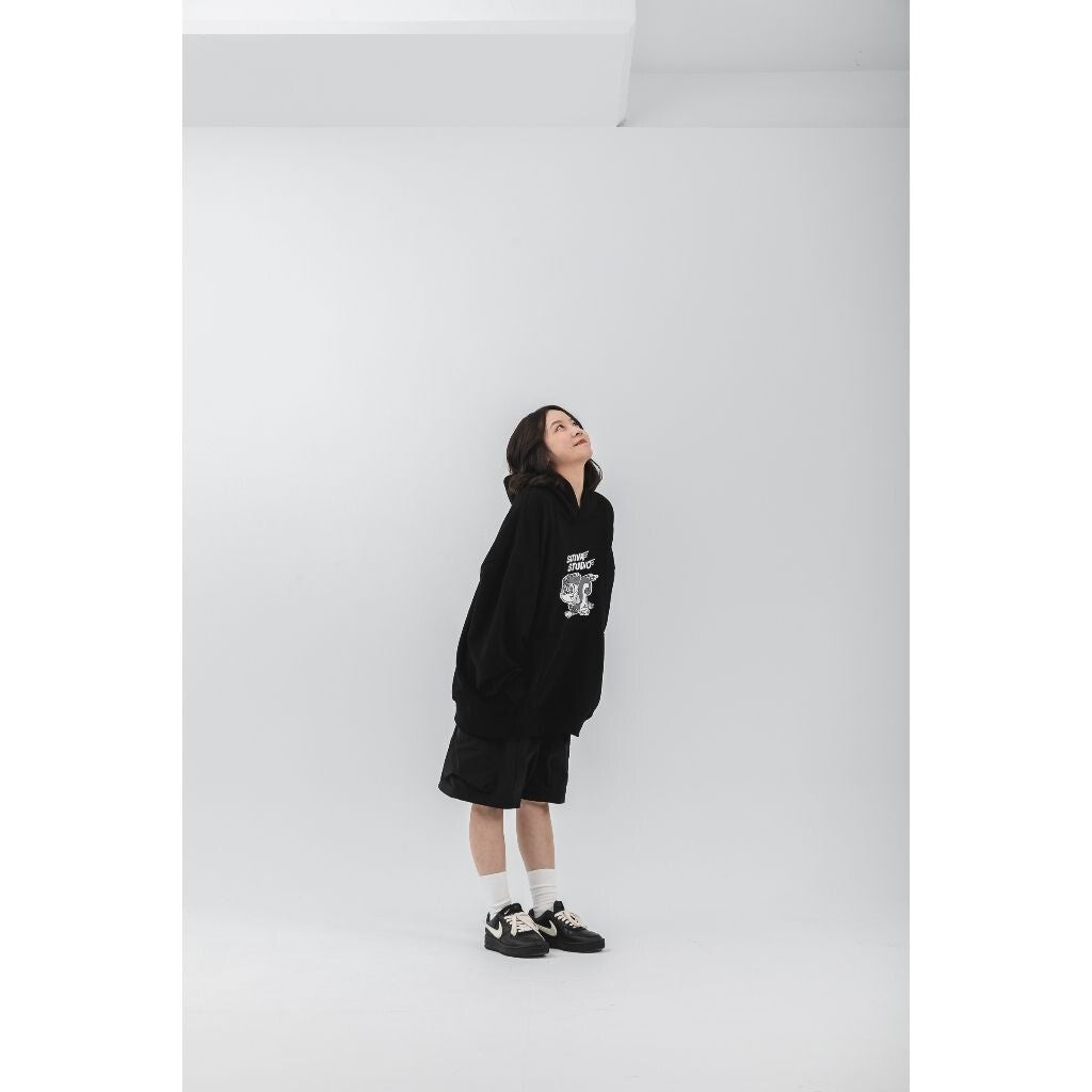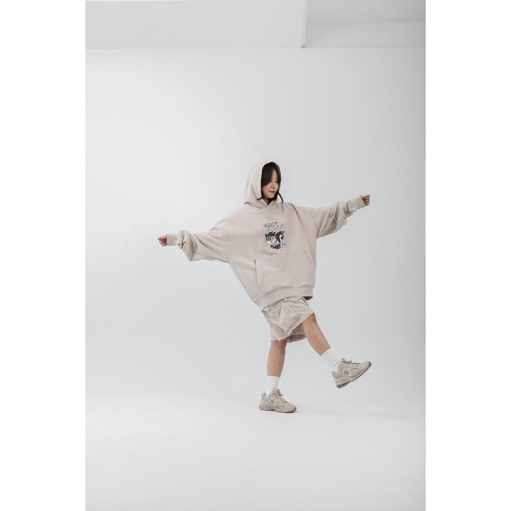 本次作品採100%Cotton面料,版型慣用寬鬆設定與下擺內縮鬆緊設計,並配置雙手置物插袋;內裏採用魚鱗棉布,給予穿著者質地親膚與柔軟感觸,另主體視覺以網版印刷並將配色做到相互點綴印象,隨手拾起即著用的日常穿搭。