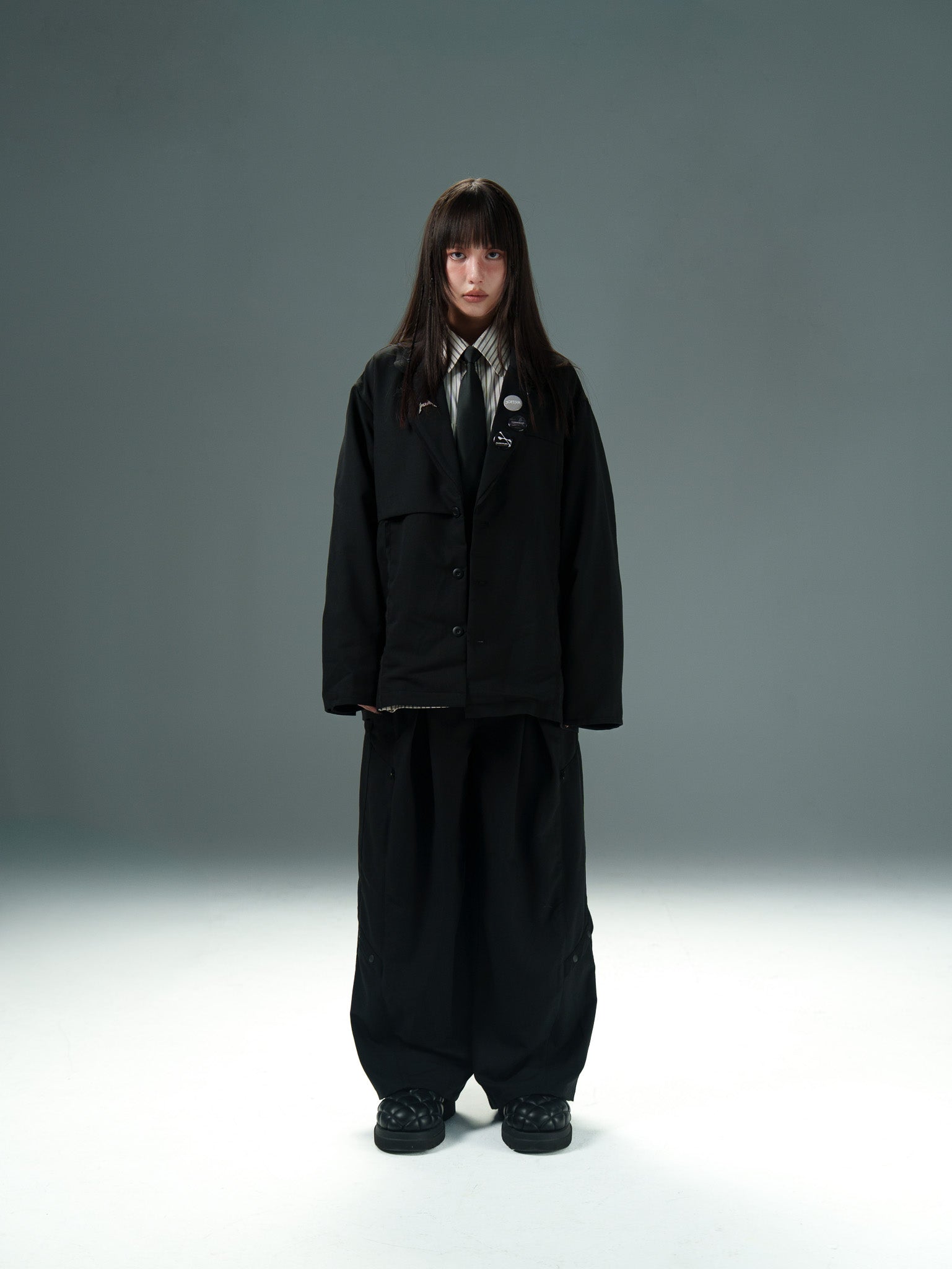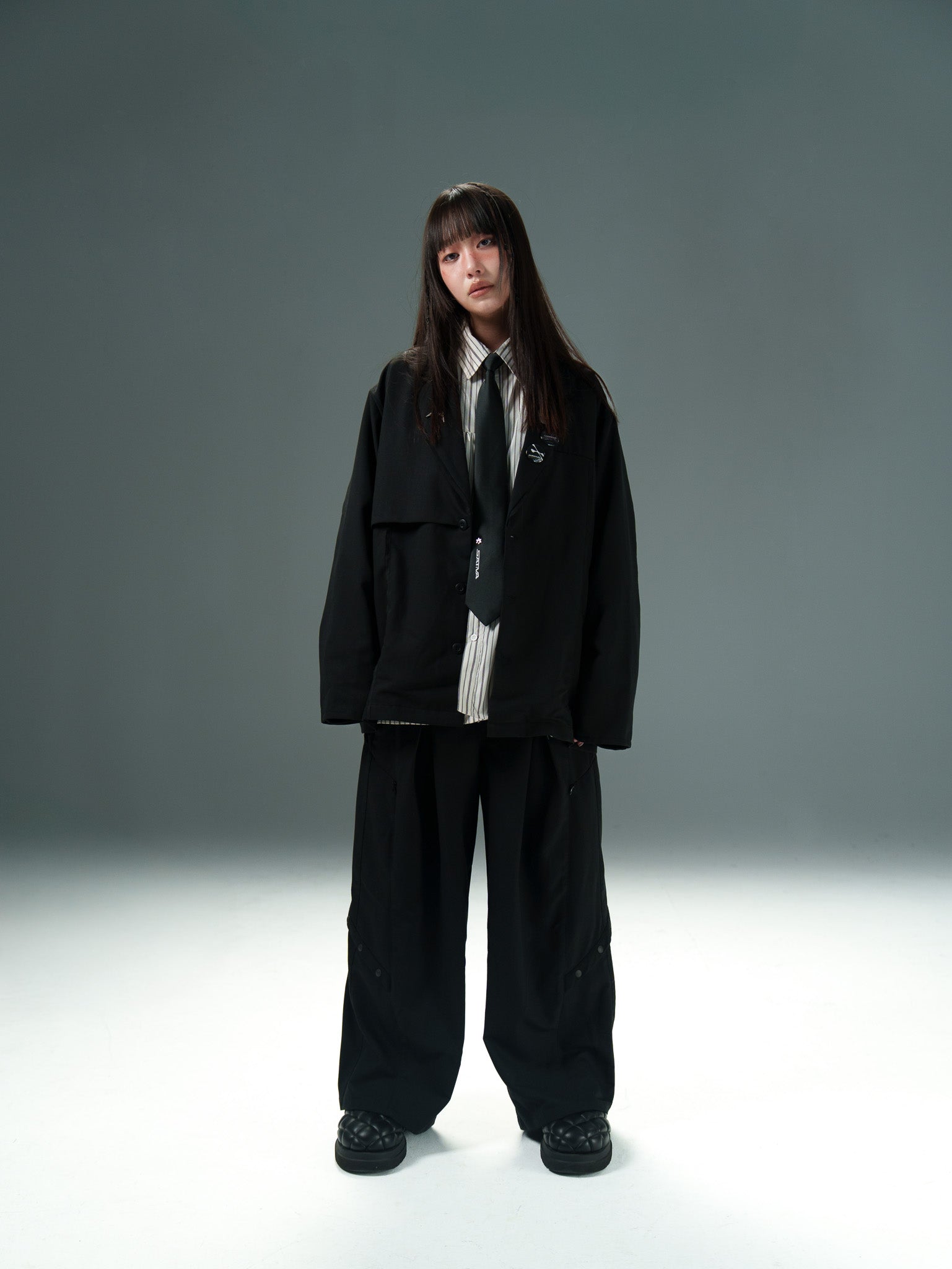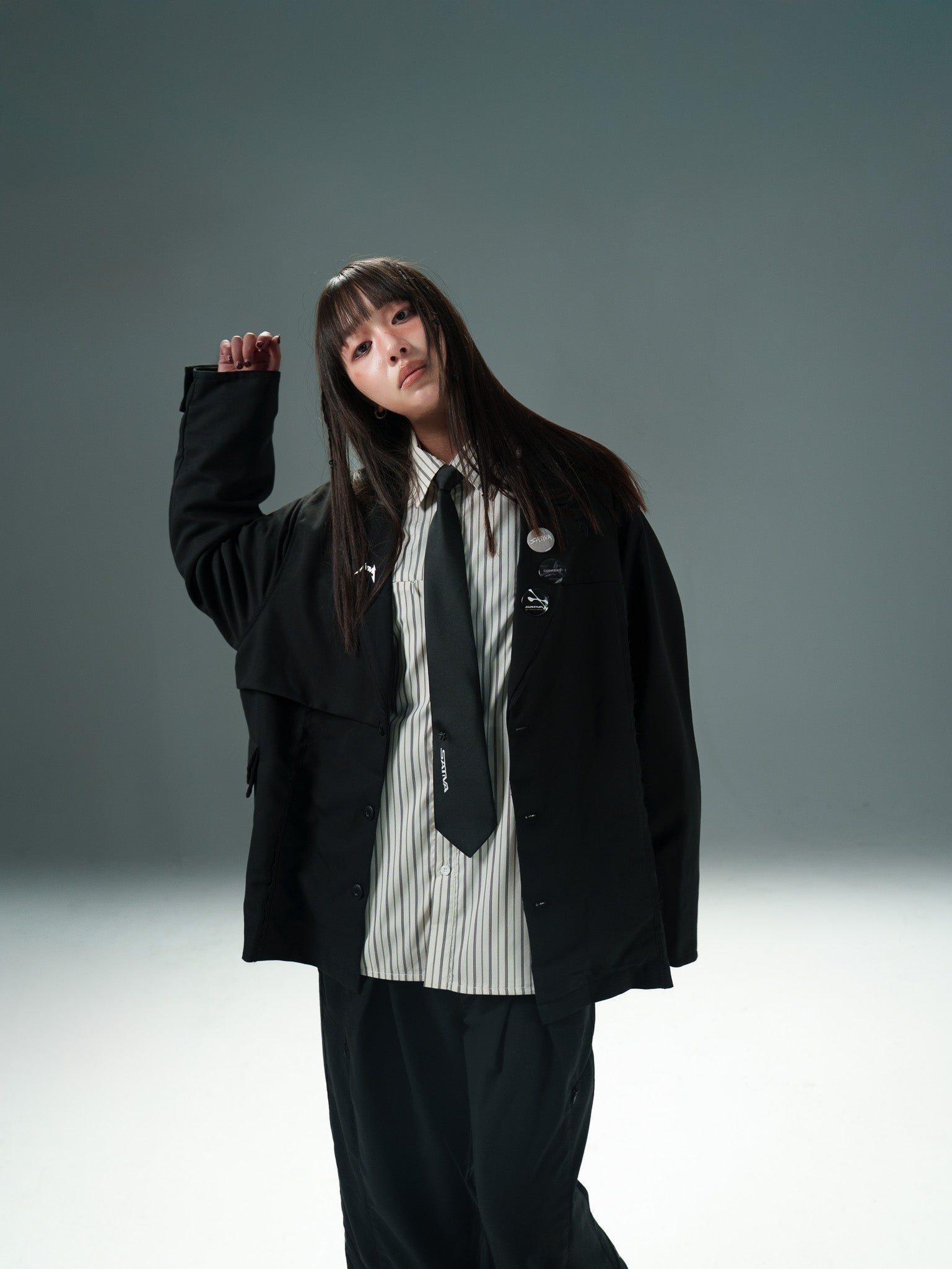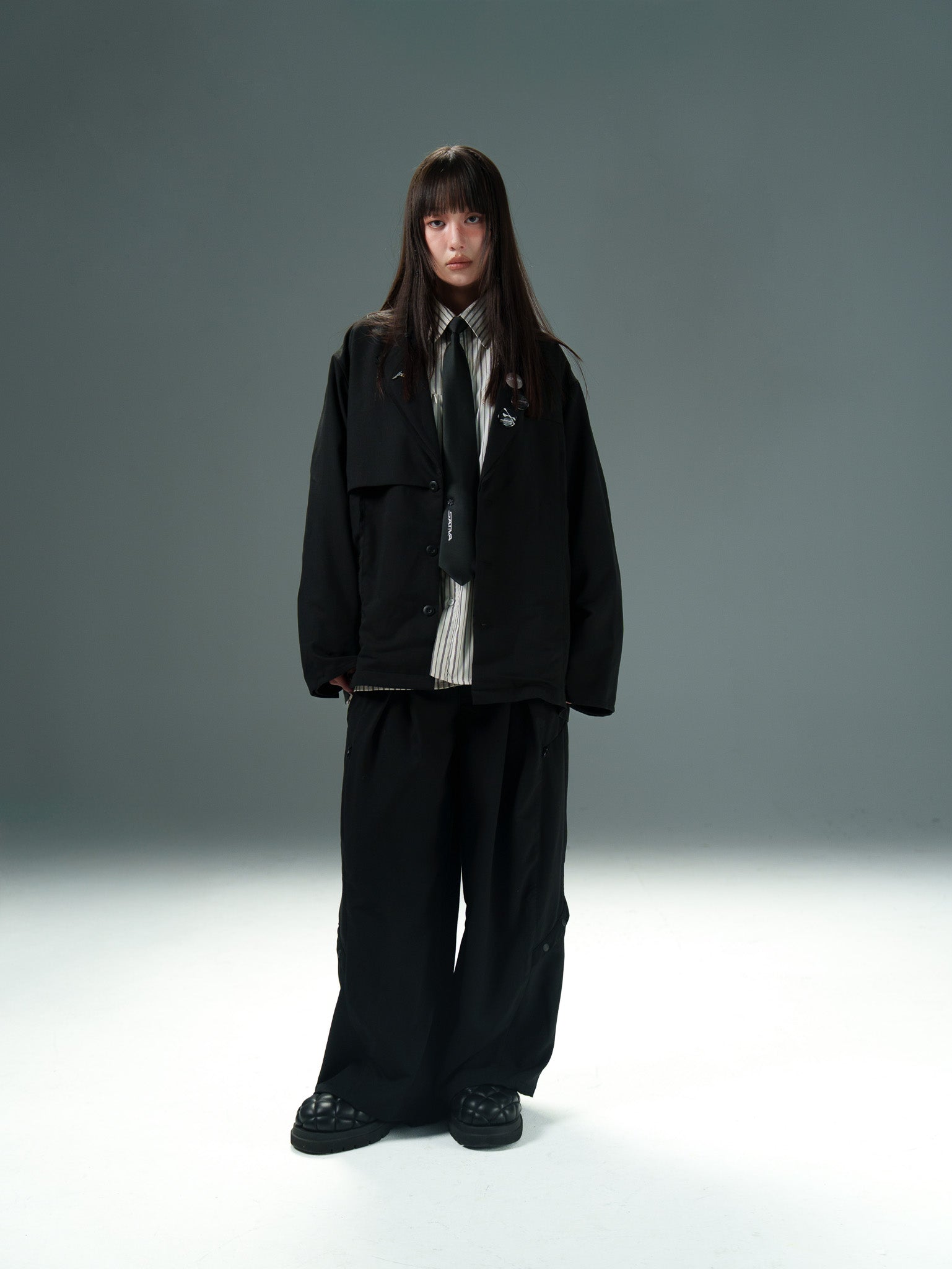 西裝素來象徵既隆重又素淨場合所需之單品,SATIVASTUDIO藉此概念打造一款正裝單品,運用熟稔慣用的解構手法,將「西裝」單品進行重塑。“Blazer”系列沿用美式西裝既正式又休閒的穿搭氛圍,將多層次拼接實踐於西裝正品上,旨在創作一款能夠作為日常輕鬆穿搭的實用單品。與“SJ-01”搭配的”STP-01”同樣將Urban Outfit精神注入其中,產製屬於我們行使的穿搭符號,將生活場域視為「日常實驗」般,帶著正式休閒兼具之意,愜意且充滿儀式感的行走於街景之上。
