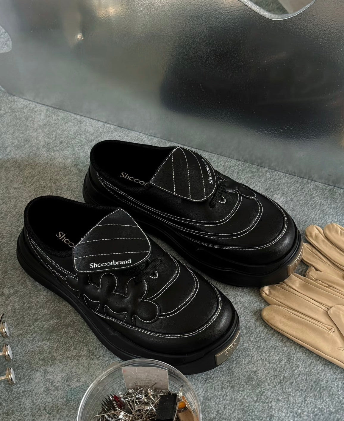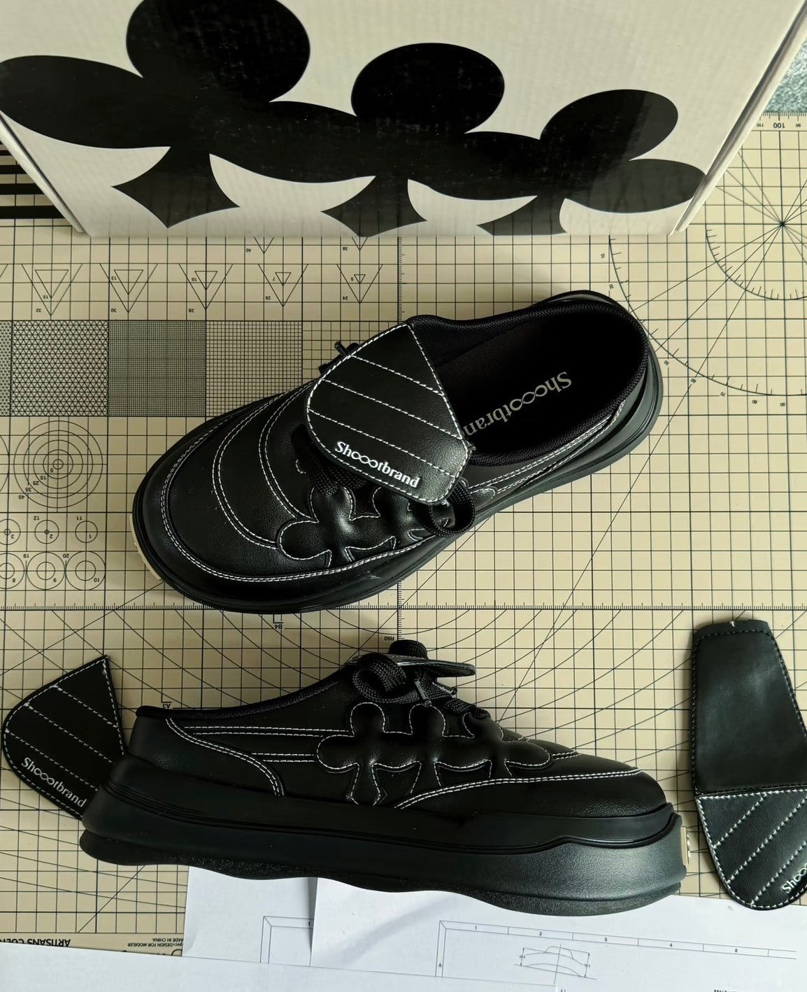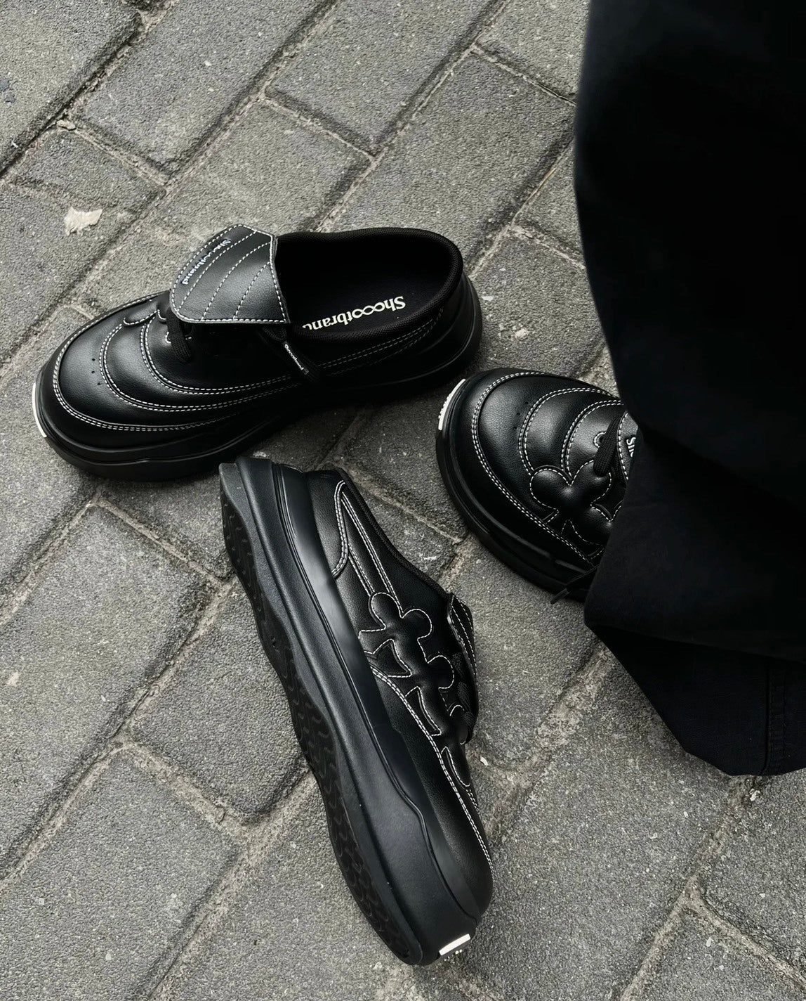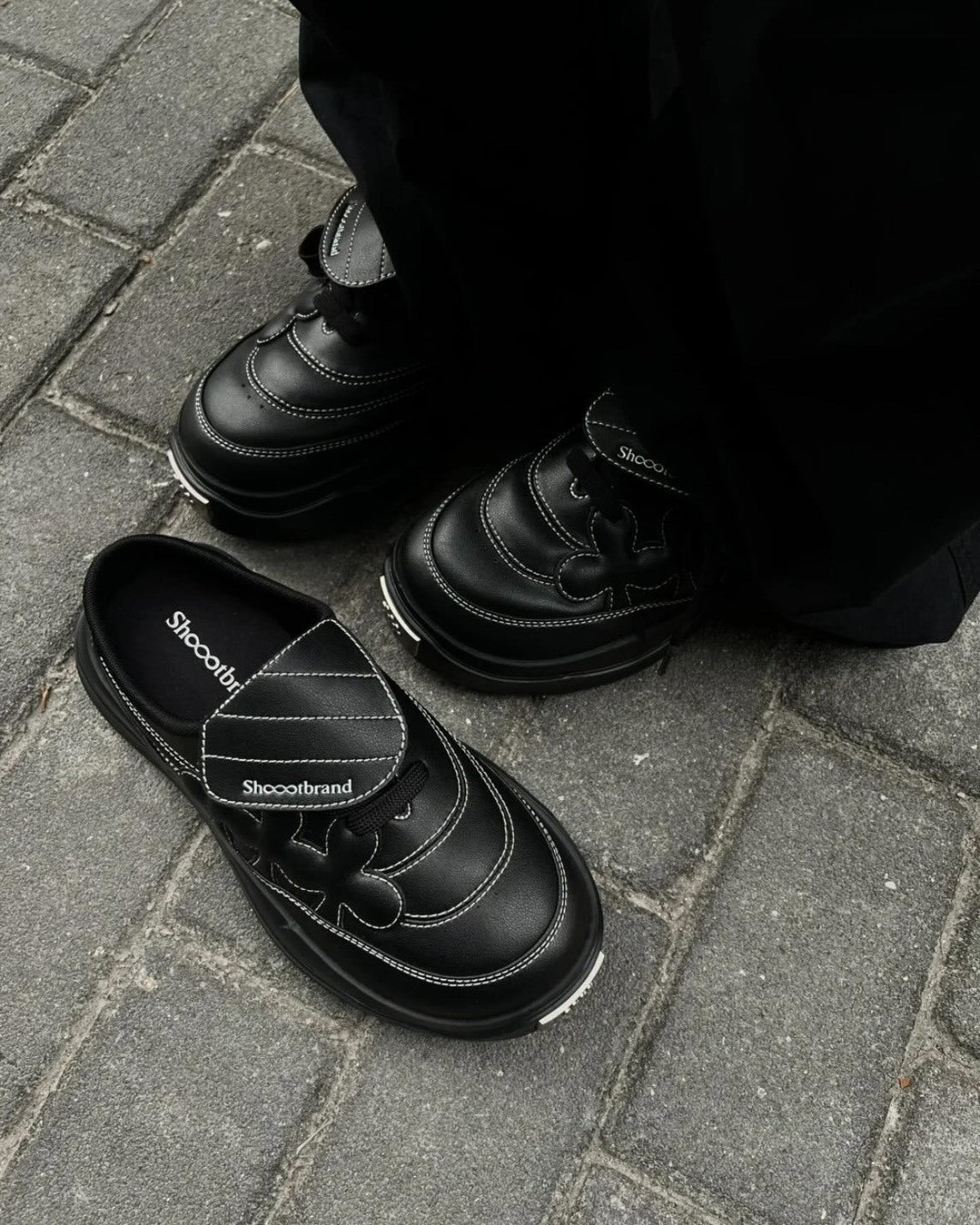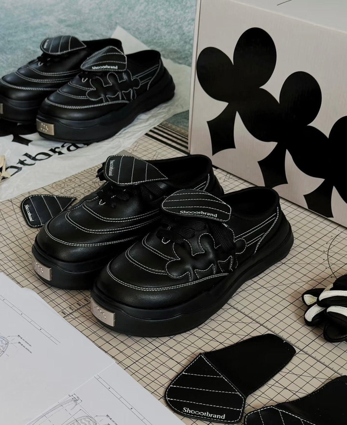 Shoot Brand Random 復古縫線皮革梅花懶人厚底勃肯鞋