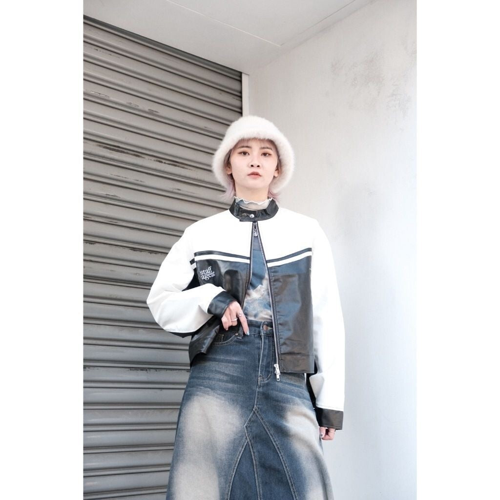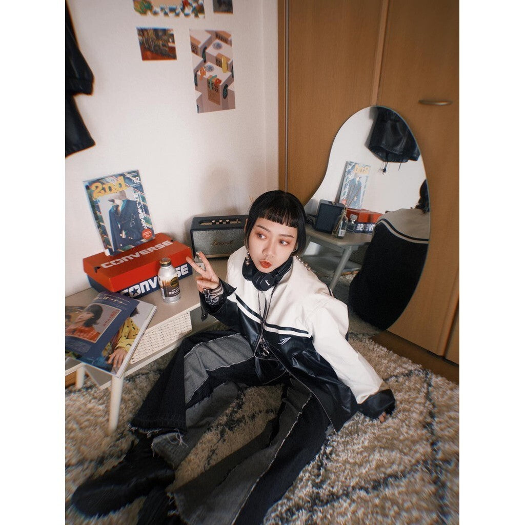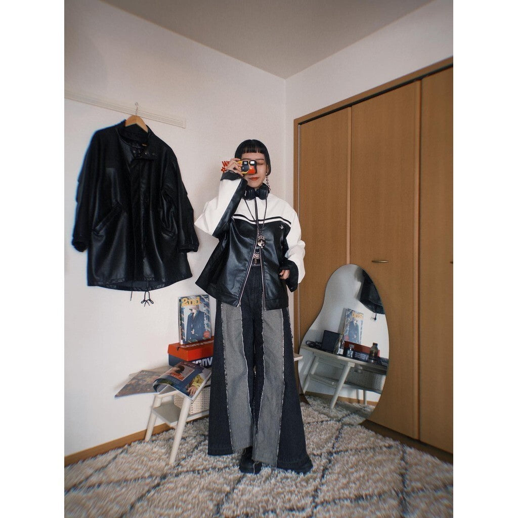 WBI 23AW SSO-01 深影 特攻 拼接 刺繡 立肩 皮革外套 雙拉鍊 皮衣
