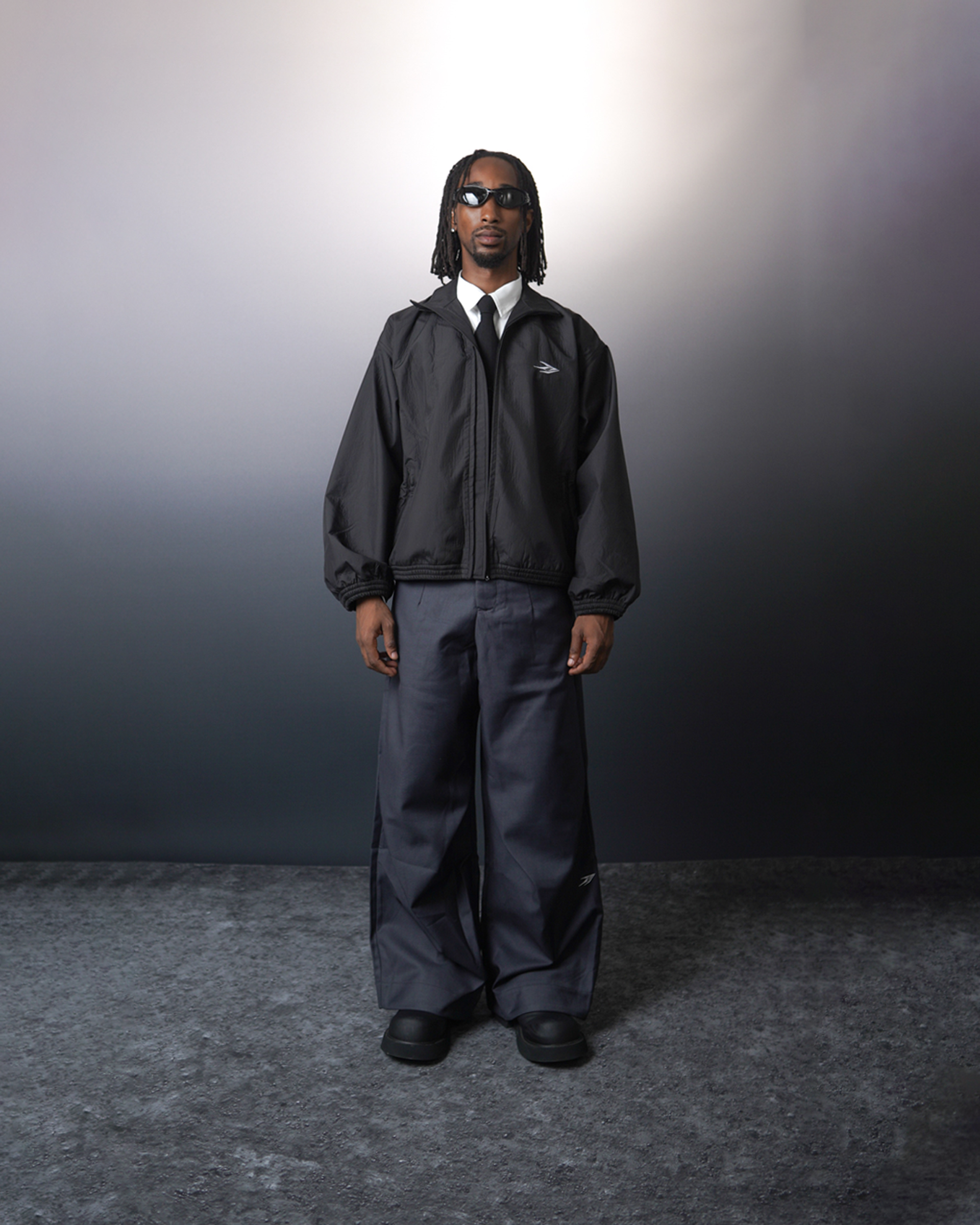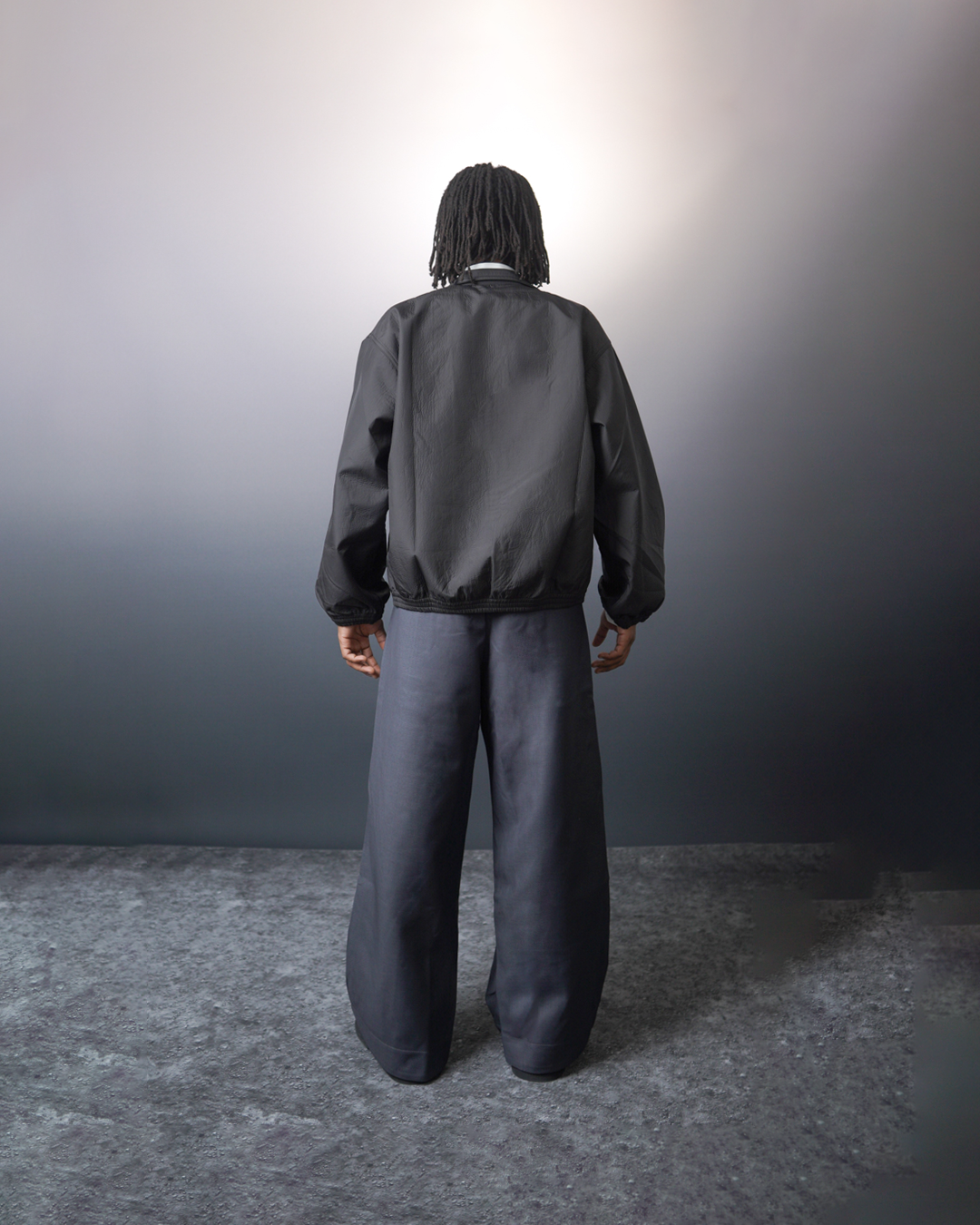 探索全新視覺效果的 WBI 斜皺摺寬褲,以深灰色展現低調的奢華感。這款寬褲的設計特色在於膝蓋處的雙打摺設計,從不同角度散發出獨特的光影變化,讓每一步都充滿動感與時尚感。