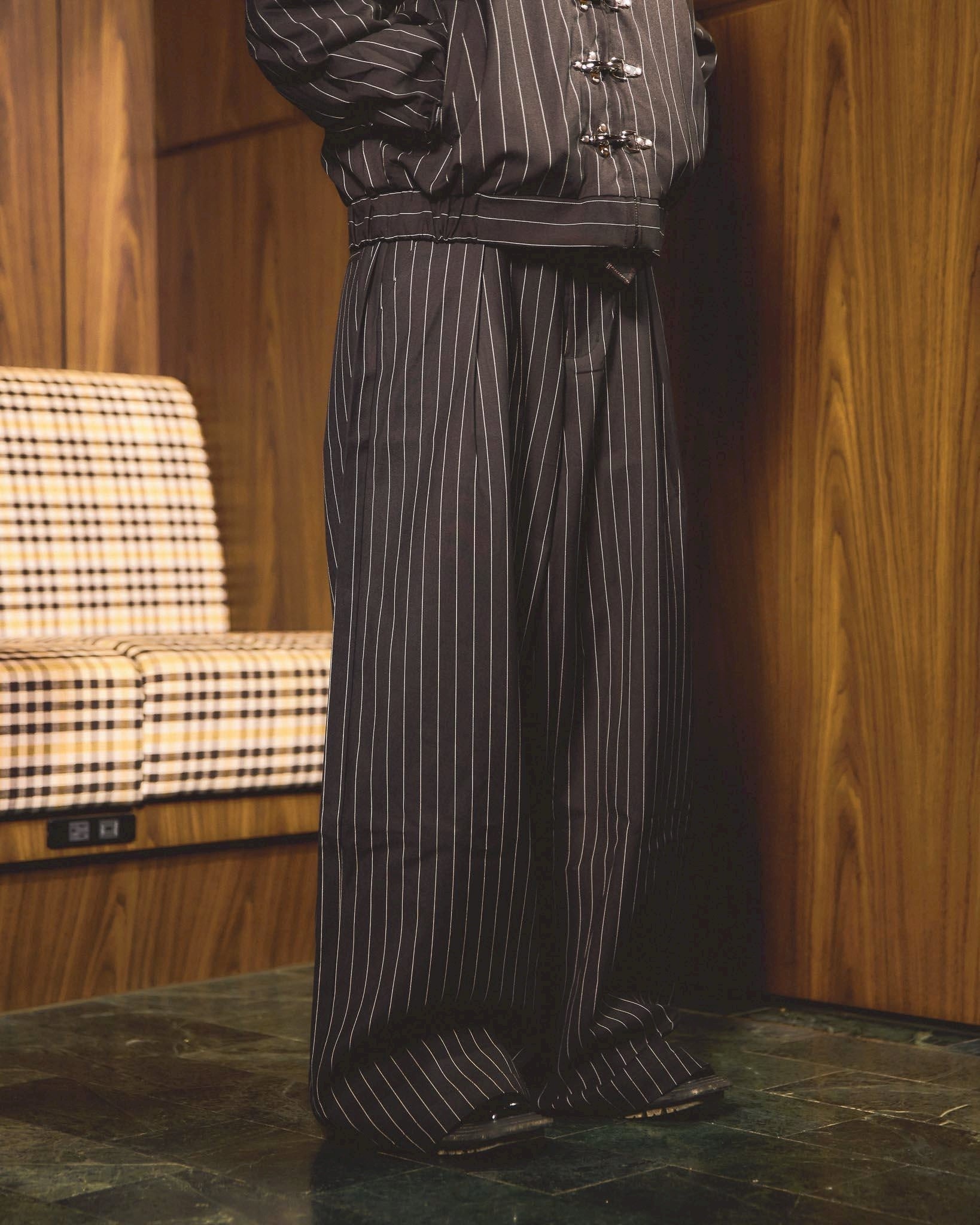 *寬版直筒剪裁,腳口自然堆摺、比例延伸