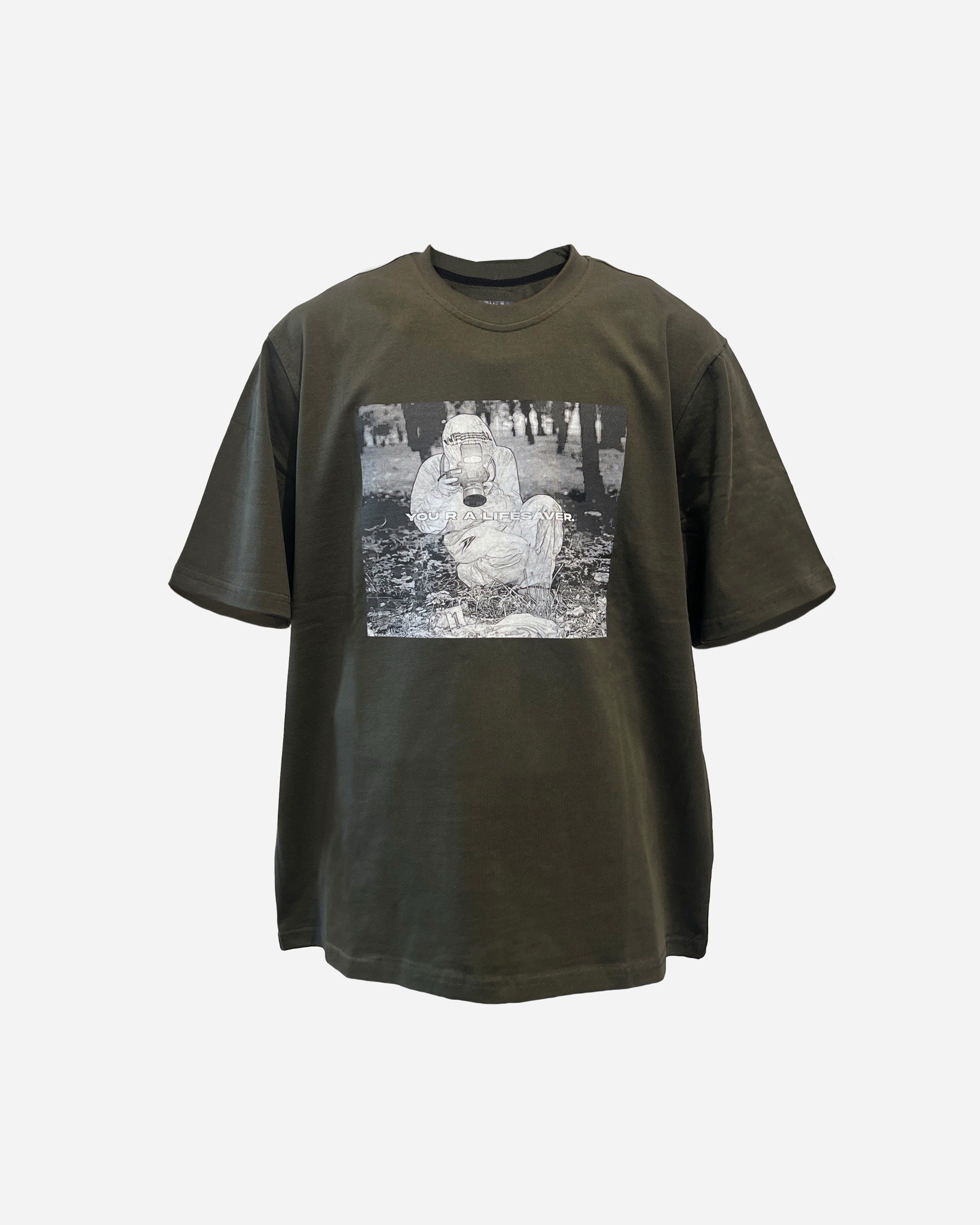 其制服無法辨識編號,畫面底部出現「YOU'RE A LIFESAVER」字樣,可能為現場意識殘留造成的異常標記。