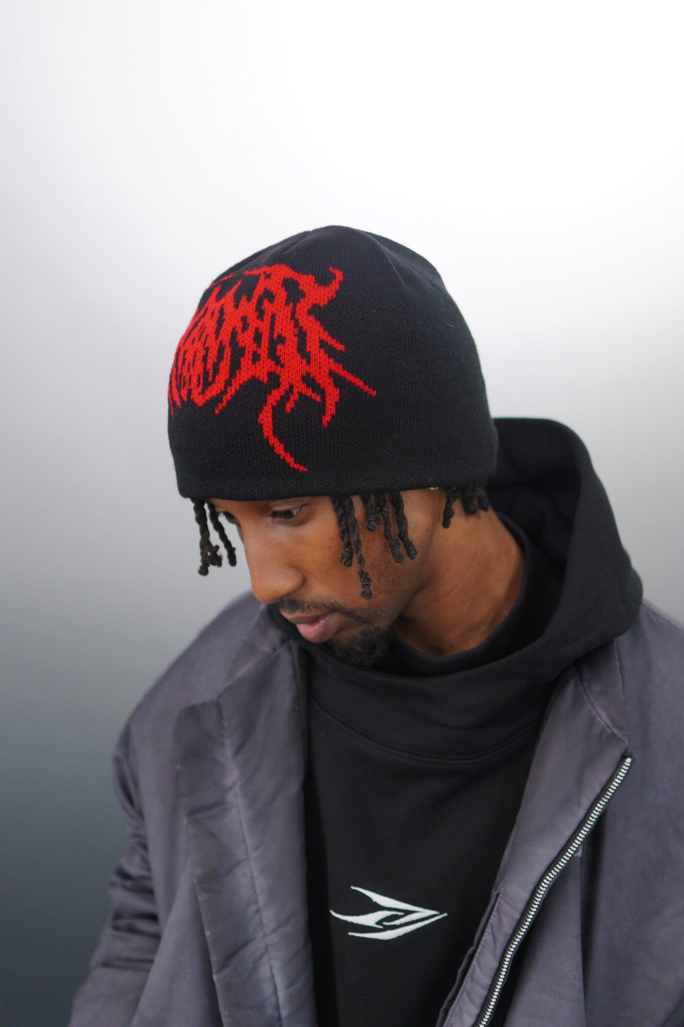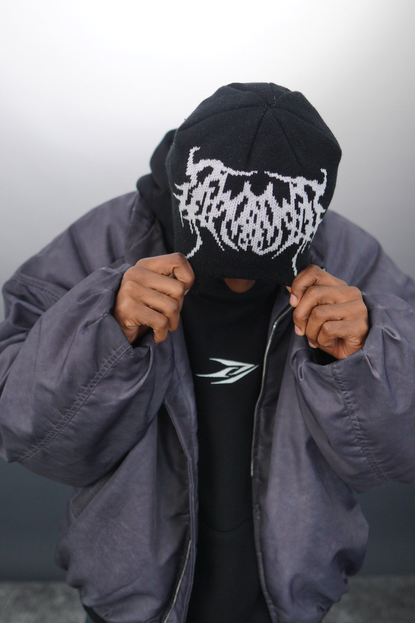 The design of the hat showcases chaotic elements, a villain's mask, symbolizing cowardice. The wearer of this beanie resembles an agent of evil, bearing the responsibility of destruction and subversion.